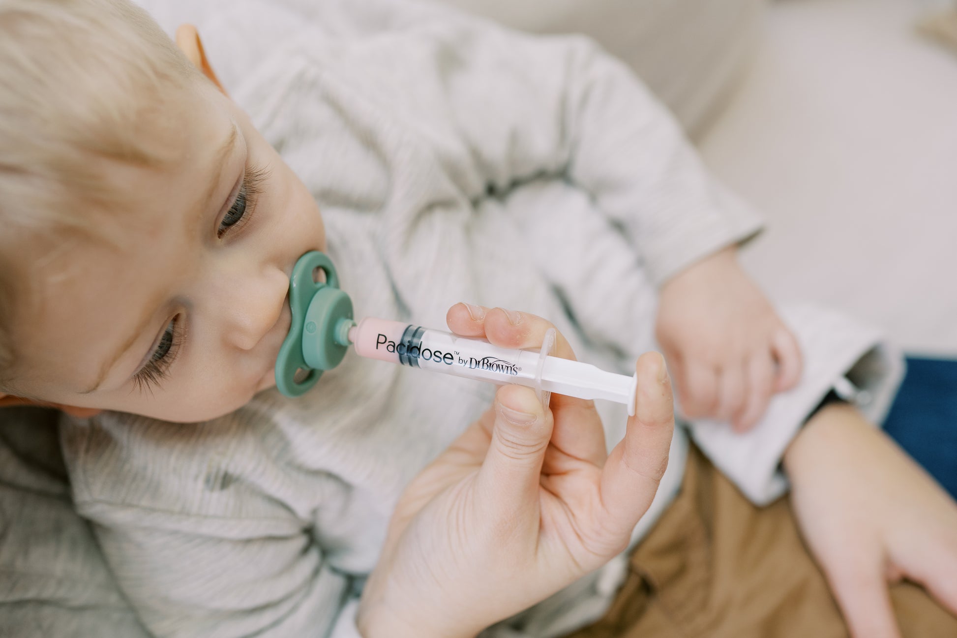 - Pacifier and syringe work together to push medicine through the pacifier, bypass baby's taste buds, and help prevent baby from spitting it out