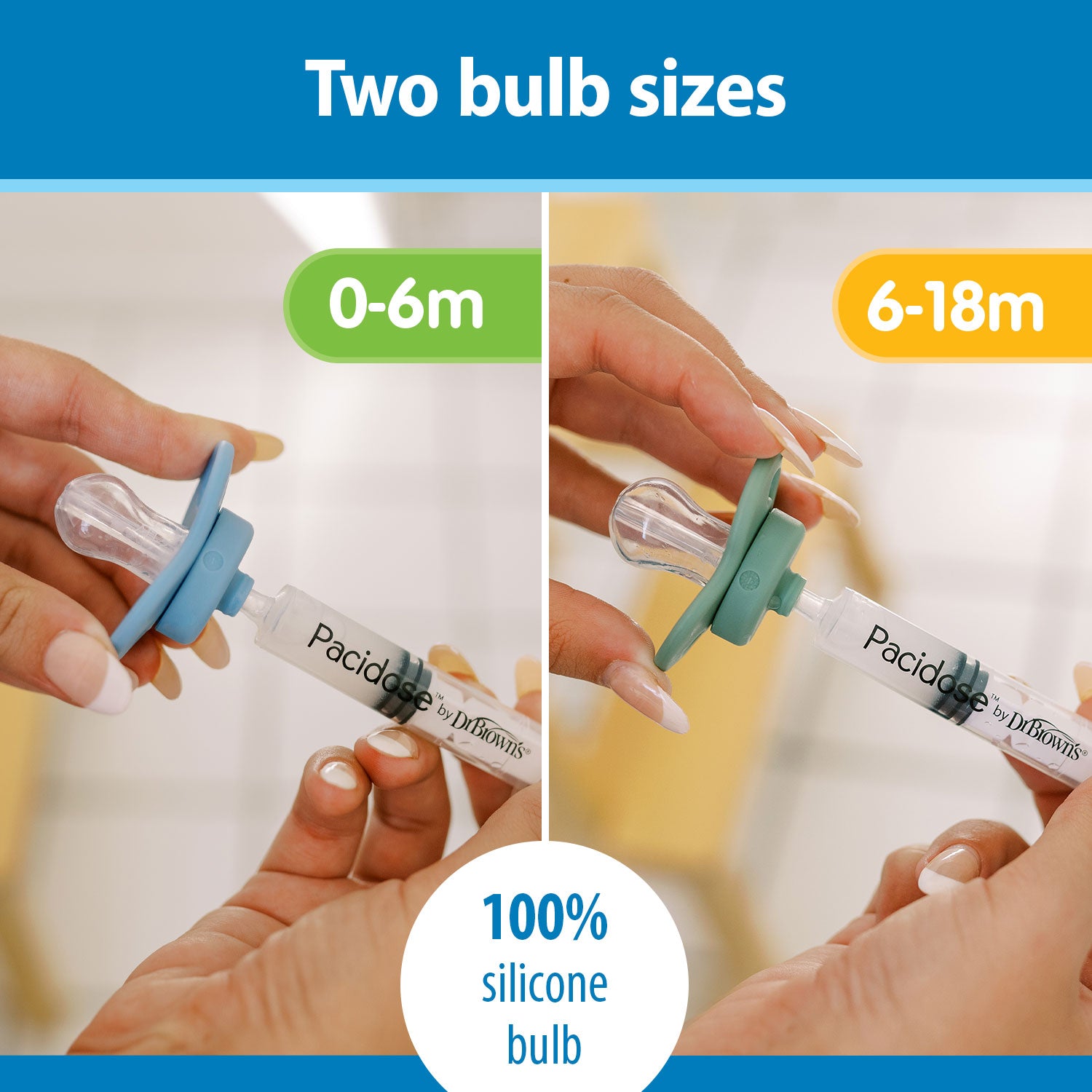 - Pacifier can fit any oral syringe you want to use