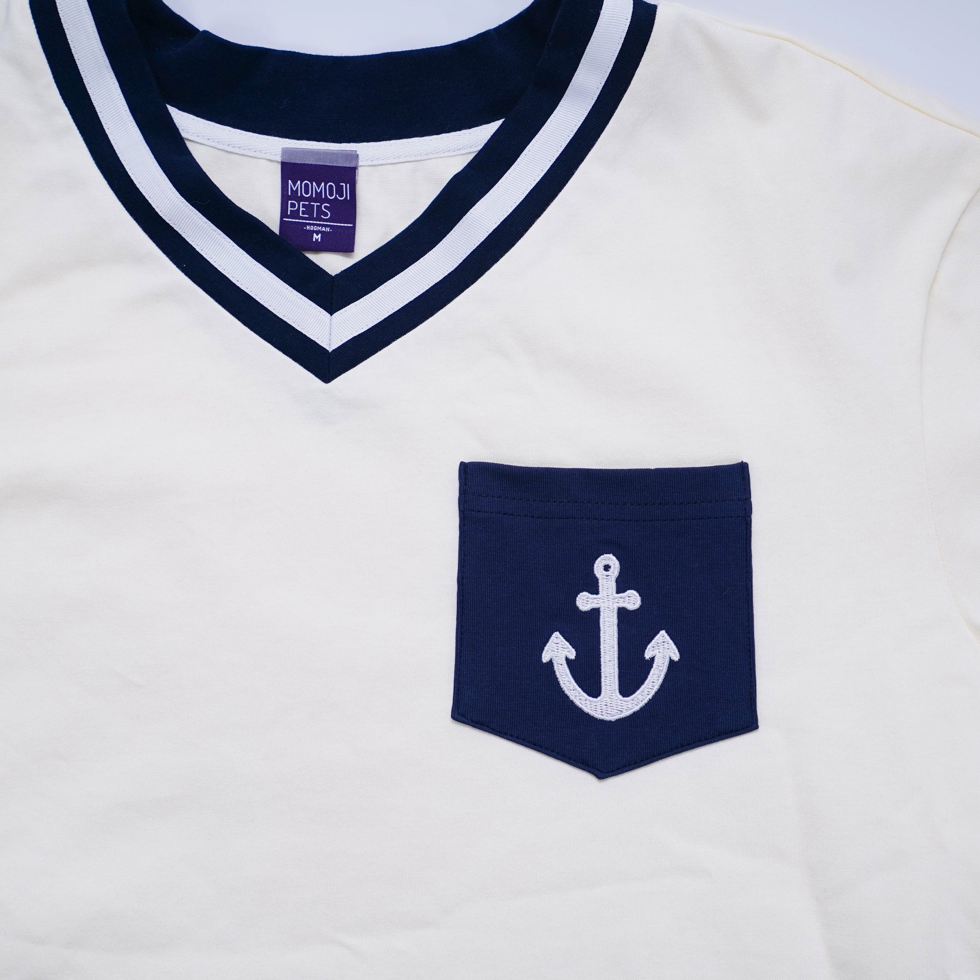 Set sail for sophisticated style with the Santiano Tee, a cornerstone of the côte-à-côte collection. Drawing inspiration from classic naval uniforms and the crisp air of the Mediterranean, this tee reinterprets traditional maritime elements through a contemporary, oversized lens. It is designed to pair perfectly with the Santiano Pet Neckwear, creating a unified look for you and your companion.